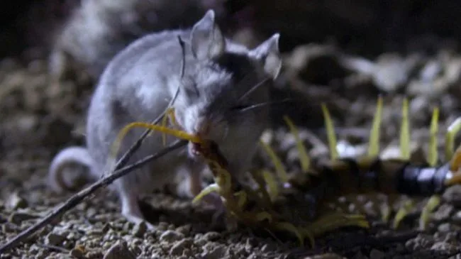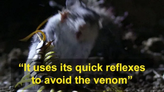 นอกจากนี้หนูเหล่านี้ยังกินตะขาบมีพิษอย่างไม่น่าเชื่อ ซึ่งมักจะพ่นพิษออกมา หนูตั๊กแตนนั้นฉลาดพอๆ กับที่มันดุร้าย พวกมันรู้ว่าตะขาบเหล่านี้จะพ่นพิษเมื่อจับเหยื่อหรือถูกจับ
