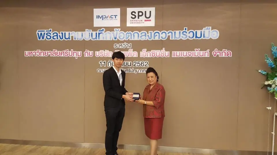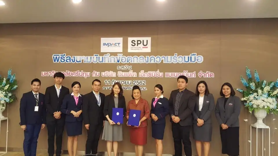 วิทยาลัยการท่องเที่ยวและการบริการ ม.ศรีปทุม จับมือ บริษัท อิมแพ็ค เอ็กซิบิชั่น แมเนจเม้นท์ จำกัด MOU ร่วมกันส่งเสริมและสนับสนุนการพัฒนาด้านวิชาการ พัฒนาทรัพยากรบุคคล และส่งเสริมให้นักศึกษาได้ฝึกปฎิบัติงานสหกิจศึกษาในสถานประกอบการชั้นนำของประเทศ