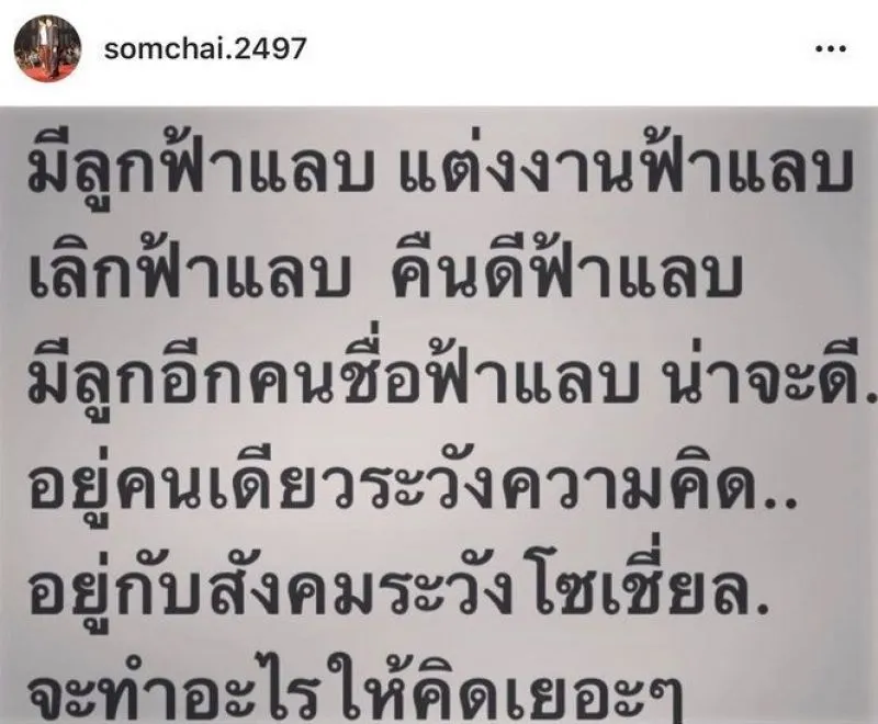 มีลูกฟ้าแลบ แต่งงานฟ้าแลบ เลิกฟ้าแลบ คืนดีฟ้าแลบ มีลูกอีกคนชื่อฟ้าแลบ น่าจะดี อยู่คนเดียวระวังความคิด อยู่กับสังคมระวังโซเชียล จะทำอะไรให้คิดเยอะๆ