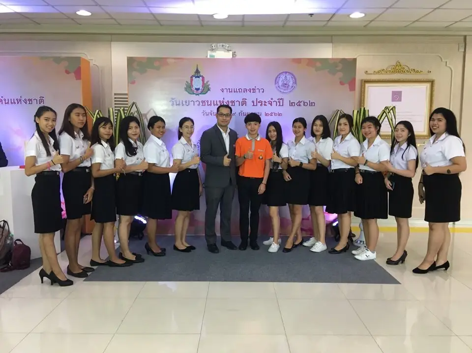 นศ.บัญชี ม.ศรีปทุม และทูตกิจกรรมเยาวชน ให้การต้อนรับ รมต.กระทรวงการพัฒนาสังคมฯ ในการแถลงข่าว งานวันเยาวชนแห่งชาติ ประจำปี 2562