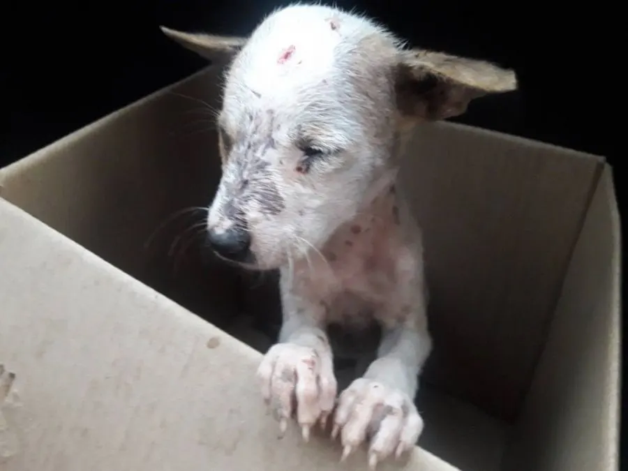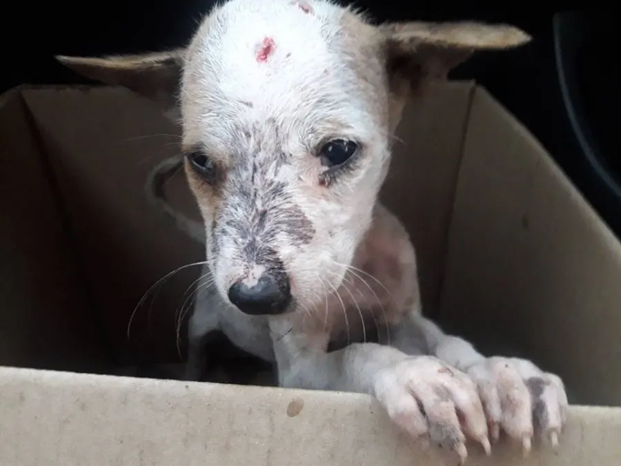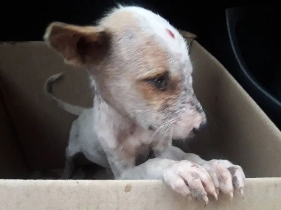 เป็นหมาจรแม่มาคลอดเอาไว้ที่รร. พี่ๆถูกรถชนไปหมดแล้ว ถูกหมาใหญ่ไล่ฟัดไร้ทางสู้ได้แต่ส่งเสียงร้องให้ช่วยชีวิต