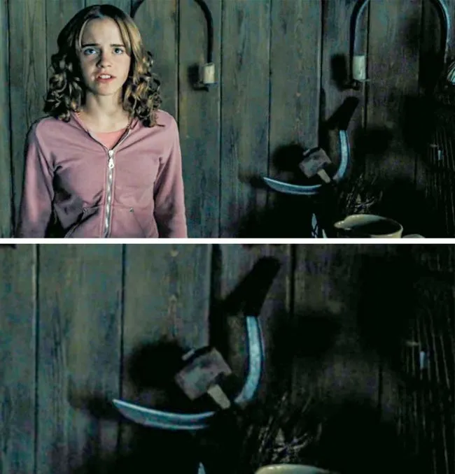 1 “ กำลังดูภาพยนตร์Harry Potter ครั้งที่สามพึ่งสังเกตเห็นค้อนและเคียว” (เปรียบเทียบกับสัญลักษณ์ค้อนเคียว)