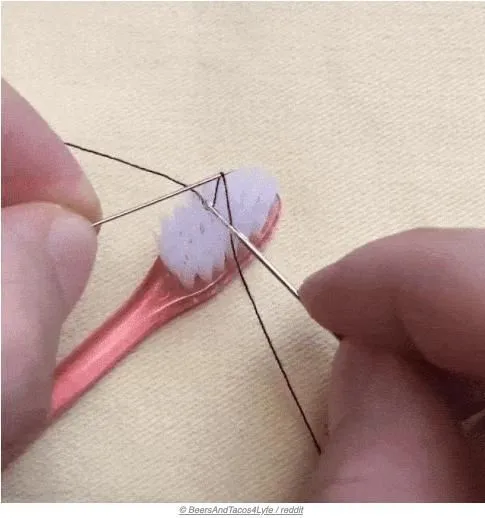 6 วิธีสนเข็มที่ง่ายมากๆหากเราไม่มีที่สนเข็ม เพียงแค่ใช้แปรงสีฟัน