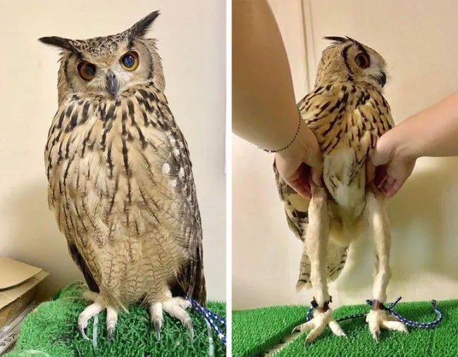 7 เห็นได้ชัดว่านกฮูกมีขาเรียวคู่อยู่ใต้ขนอันปุกปุยของพวกมัน