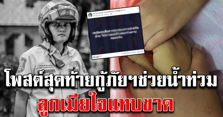 โพสต์สุดท้าย หนุ่มกู้ภัยฯช่วยน้ำท่วม ลูกเมียแทบขาดใจ