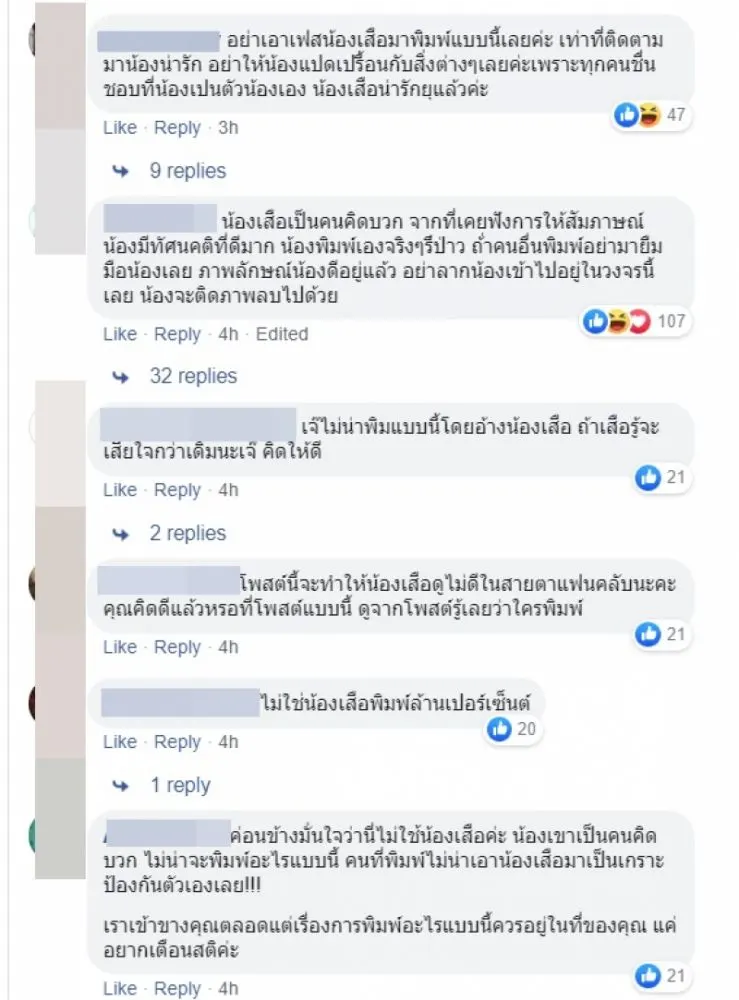 อย่างไรก็ตาม ภายหลังจากที่มีการโพสต์ข้อความดังกล่าว ผู้ที่ติดตามหลาย ๆ รายต่างเข้าไปคอมเมนต์แสดงความคิดเห็นว่า รู้สึกว่าข้อความดังกล่าว เสือไม่ได้เป็นคนพิมพ์เอง เนื่องจากเสือเป็นคนคิดบวก ดูจากการสัมภาษณ์ก็ไม่เคยพูดพาดพิงใคร ลักษณะการพิมพ์เช่นนี้ เหมือนเป็นพิมพ์ของกานต์มากกว่า วอนขอร้องอย่าให้แม่ทำร้ายลูกทางอ้อมเลย การทำเช่นนี้จะดึงให้เสือต้องเสียตามไปด้วย