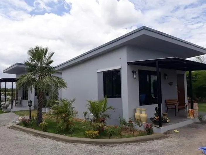 กลับมาอีกเช่นเคยครับ หากพูดถึงเรื่องห้องพัก ที่หลายๆท่าน เคยไปใช้บริการมา อาจจะดูแตกต่างกันไปในหลายรูปแบบ วันนี้ผู้เขียน ขอนำท่านผู้อ่าน มาดูกับห้องพักหลังนี้กันเลยครับ เริ่มต้นที่บริเวณรอบห้องกันเลย ครับ มีสนามหญ้าเล็กๆ ตกแต่งด้วยต้นไม้หลากหลายสายพันธุ์ ส่วนหน้าห้องมีอ่างบัวและโคมไฟแต่งสวน ด้านหลังคาหน้าห้องใช้หลังคาโพลี่ขึ้นด้วยโครงเหล็ก ข้อดีของหลังคาชนิดนี้คือ สวยงาม,หลายสี,เคลือบสารกัน UV,มีหลายเกรดเลือกได้ตามงบ ข้อเสียคือ ใต้ชายคายังร้อนเพราะแสงส่องผ่านได้,ฝนตกเสียงดังป๊อกๆ แป๊กๆ