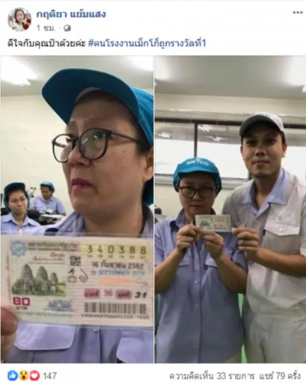 ดีใจกับคุณป้าด้วยค่ะ #คนโรงงานเม็กโก้ถูกรางวัลที่1