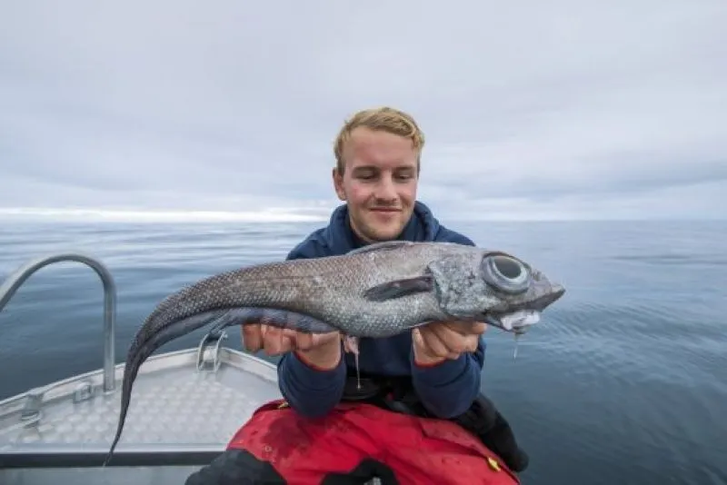 ออสการ์ ลุนดาล วัย 19 ปี คนนำทางตกปลาแก่ นอร์ดิก ซี แองกลิง จับปลาหนูตัวนี้โดยบังเอิญขณะออกไปหาปลาแฮลิบัตสีน้ำเงินหายากนอกชายฝั่ง 5 ไมล์ทะเล