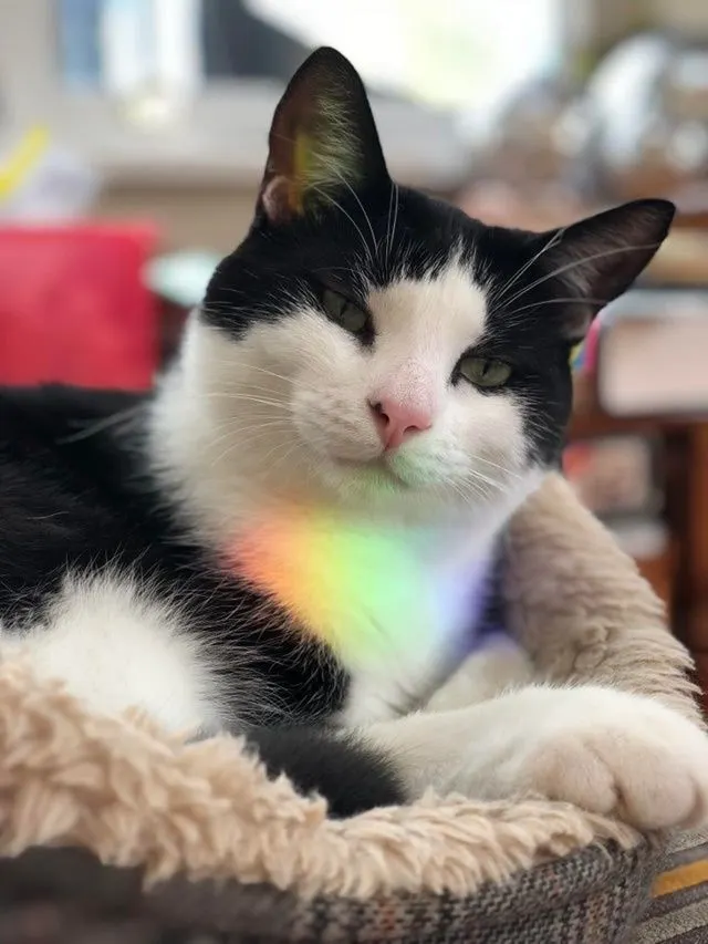 แมวเหมียวที่กลายเป็นผู้มีพลังพิเศษ เมื่อมันมานอนตรงกับสายรุ้งที่กล้องสามารถจับภาพเอาไว้ได้