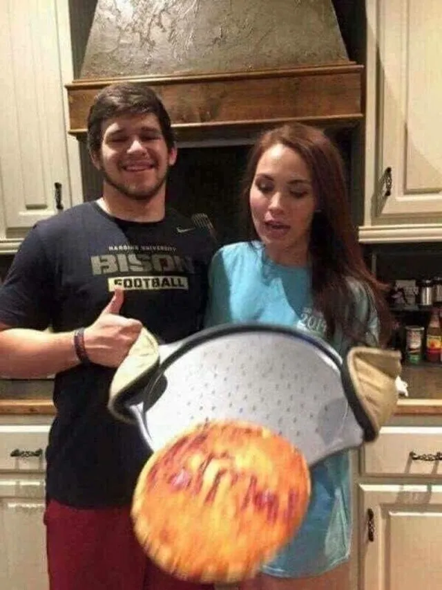 โมเมนต์สุดเศร้าของคนที่กำลังจะใจสลายเพราะพิซซ่าคว่ำลงไปบนพื้น แต่ชายหนุ่มในภาพนั้นยังไม่รู้ตัว มีเพียงหญิงสาวที่มองเห็นเหตุการณ์ได้อย่างชัดเจน