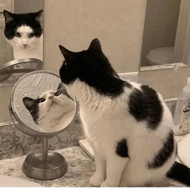 ความหลอนปนเท่ของแมวเหมียวที่ดูเหมือนกำลังมองกระจกสองบานพร้อมกันพอดี ที่อาจพิสูจน์ให้เห็นว่าสถานะซ้อนทับของแมวตามแนวคิดของชเรอดิงเงอร์นั้นมีอยู่จริง