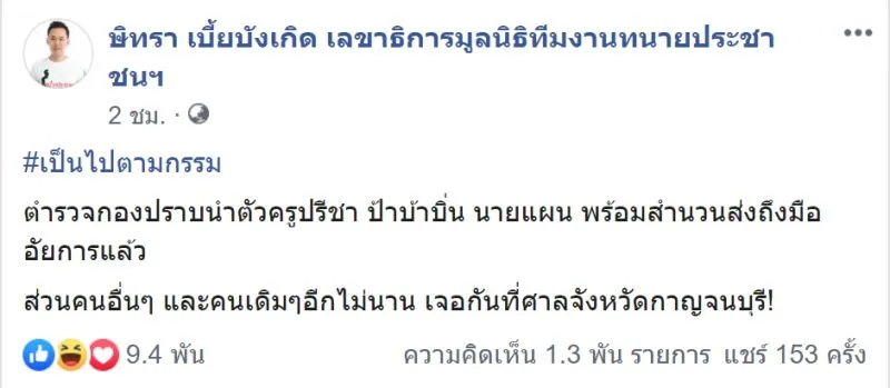 ขอขอบคุณ เฟซบุ๊ก ษิทรา เบี้ยบังเกิด เลขาธิการมูลนิธิทีมงานทนายประชาชนฯ