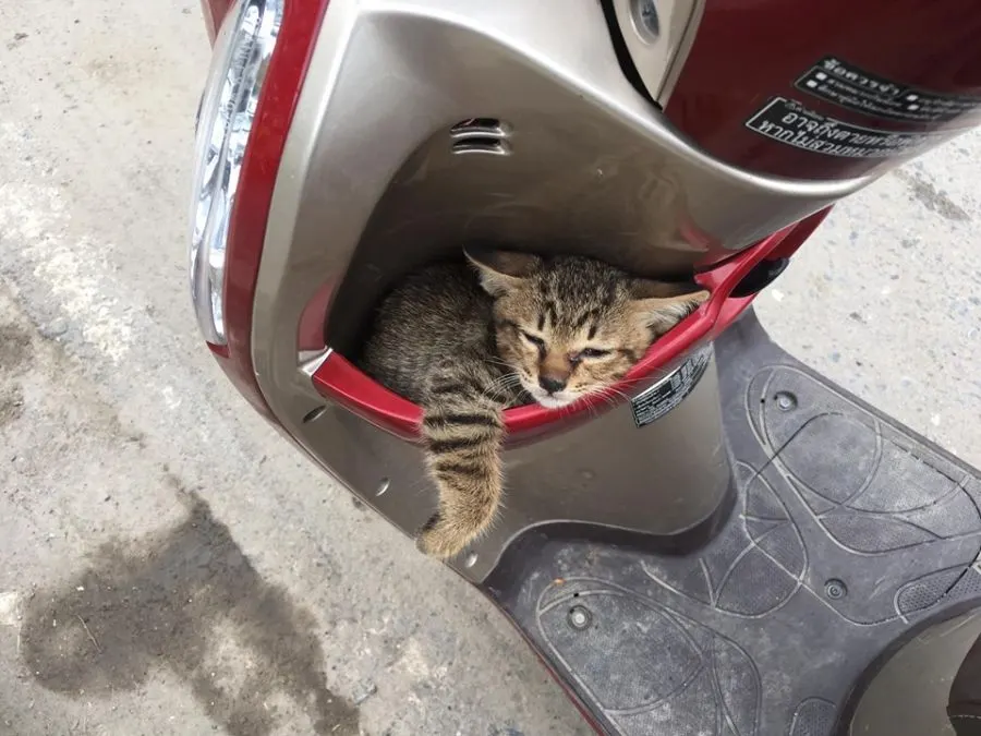 เมื่อไม่นานมานี้ผู้ใช้งานเฟสบุ๊กคุณ : Srisuk Matee ได้เผยเรื่องราวหลังเขานั้นกำลังขี่รถไปส่งลูกสาวไปโรงเรียน และเขาก็ได้พบเจอกับแมวน้อยตัวหนึ่งนอนอยู่ข้างถนน เขาก็มองซ้ายมองขวาแถวนั้นก็ไม่มีคน เขาก็เลยตัดสินใจอุ้มแมวใส่ช่องเก็บของที่รถ แล้วขี่รถกลับบ้านไปด้วยกัน