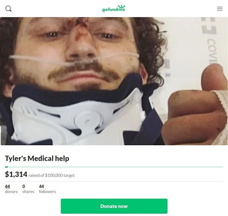 ทั้งนี้ พี่สาวของไทเลอร์ได้เปิดรับบริจาคบนเว็บไซต์ GoFundMe ขอเงินช่วยเหลือค่ารักษาพยาบาล โดยตั้งเป้าไว้ที่ 100,000 ดอลลาร์สหรัฐ หรือกว่า 3 ล้านบาท