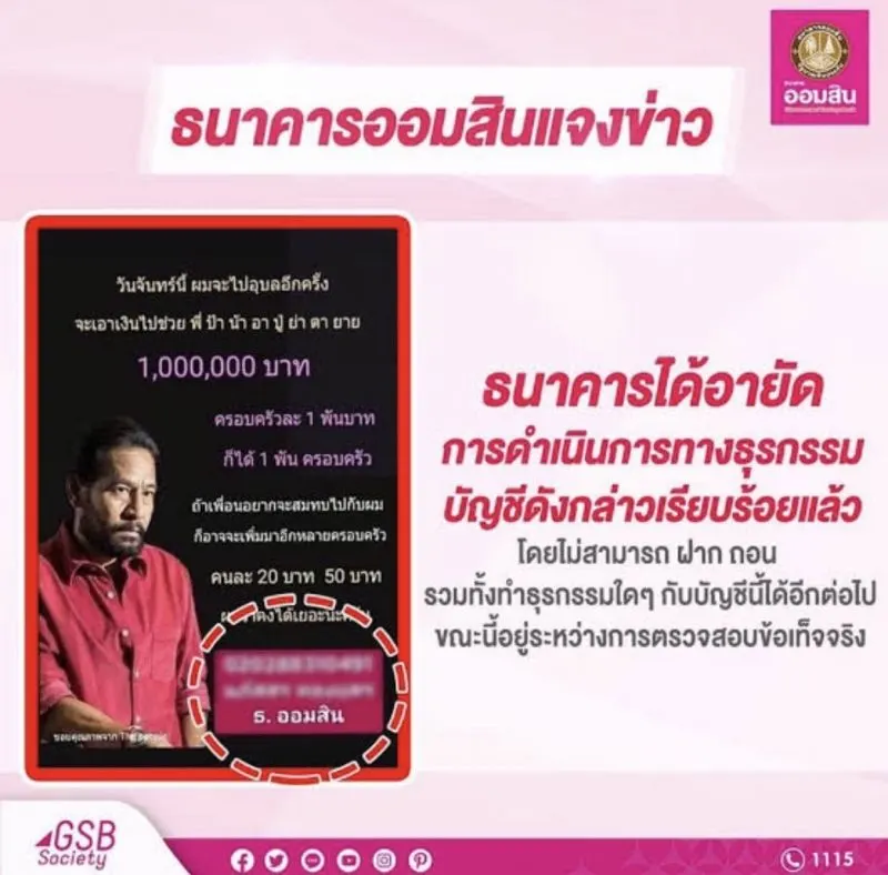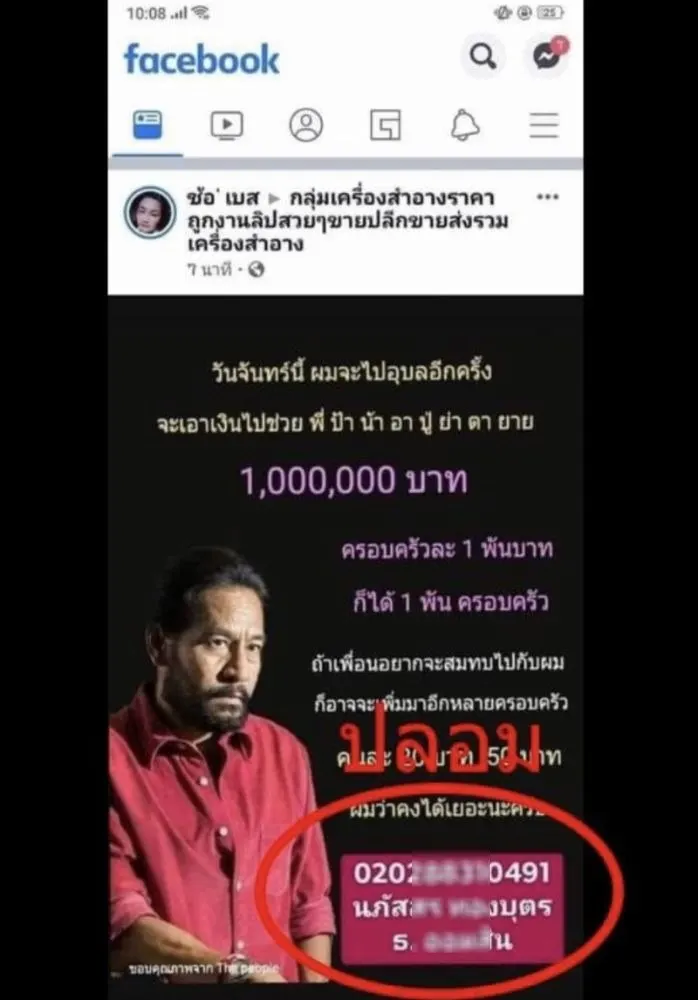 ล่าสุดเพจ ข่าวชาวบ้าน – Thai TV Social ได้เปิดเผยหน้าตาผู้หลอกเงินบริจาคโดยระบุว่า คุณบิณฑ์ บรรลือฤทธิ์ผจก.ฝ่ายกิจกรรมพิเศษมูลนิธิร่วมกตัญญู เดินทางไปที่ สภ.วารินชำราบจ.อุบลราชธานีเพื่อแจ้งความเอาผิด ผู้ทำเพจปลอมหลอกรับโอนเงินและผู้ปลอมบัญชีรับบริจาค ตามการร้องเรียนของประชาชนที่หลงโอนเงินไป