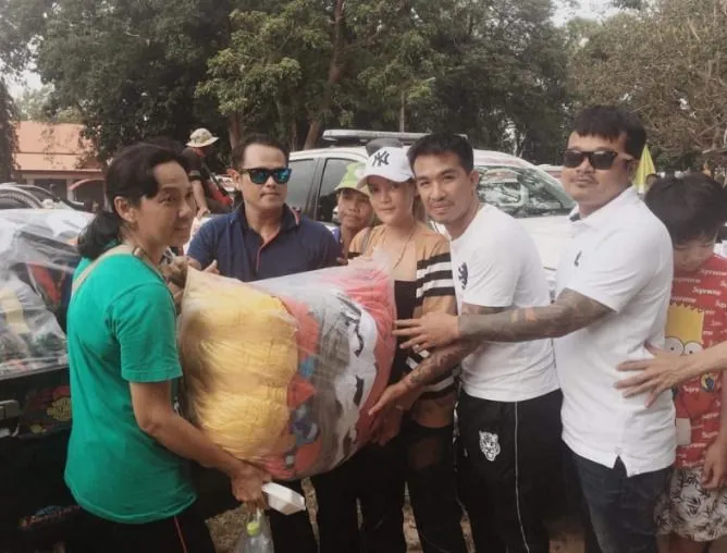 โดยล่าสุด ผู้ใช้เฟสบุ๊ค “บานเย็น อ้อ ชาญนรา” ได้โพสต์ภาพขณะ เสี่ยโป้ลงพื้นที่ช่วยผู้ประสบภัยที่ จ.อุบลฯ โดยมีชาวบ้าน มาขอถ่ายรูปด้วย พร้อมนำสิ่งของมาบริจาคช่วยน้ำท่วม