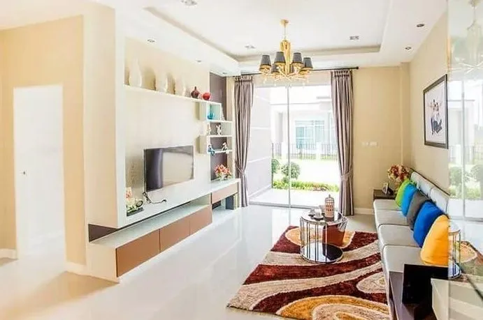 ห้องโถง มีการตกแต่งได้อย่างลงตัว พื้นปูด้วยกระเบื้องโทนสีขาว ผนังด้านบนเป็นแบบ ฝ้าหลุม ซึ่งเป็นที่นิยมอย่างมากในปัจจุบัน พร้อมด้วยไฟโคมที่ดูสวยงาม
