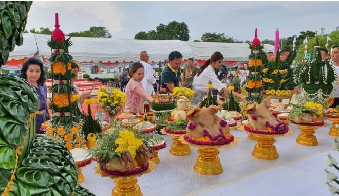ในพิธีได้มีจัดวางเครื่องสักการะและบายศรีในรูปแบบต่างๆ อย่างครบเครื่อง เพื่อรำลึกถึงพระมหากรุณาธิคุณของพระบาทสมเด็จพระจุลจอมเกล้าเจ้าอยู่หัว ที่พระองค์ทรงประกาศเลิกทาส และพัฒนาด้านต่างๆ ของประเทศไทย