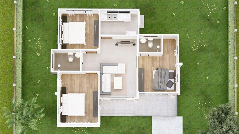 ไอเดียแบบบ้านสวยๆสไตล์โมเดิร์น ขนาด 3ห้องนอน 2ห้องน้ำ ราคาถูก