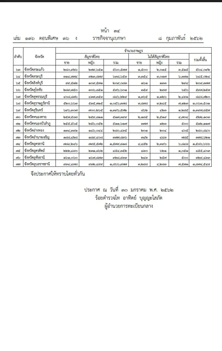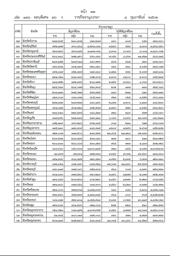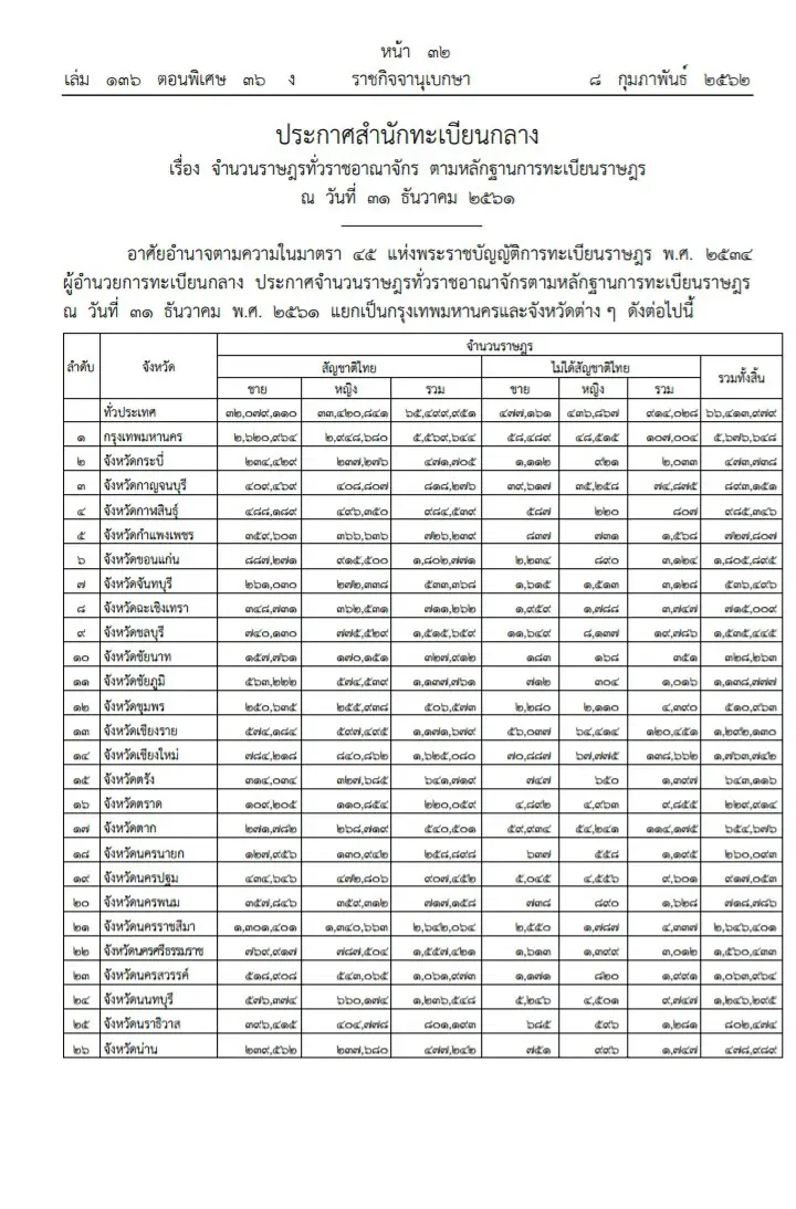 จำนวนราษฎรในประเทศไทย ล่าสุด