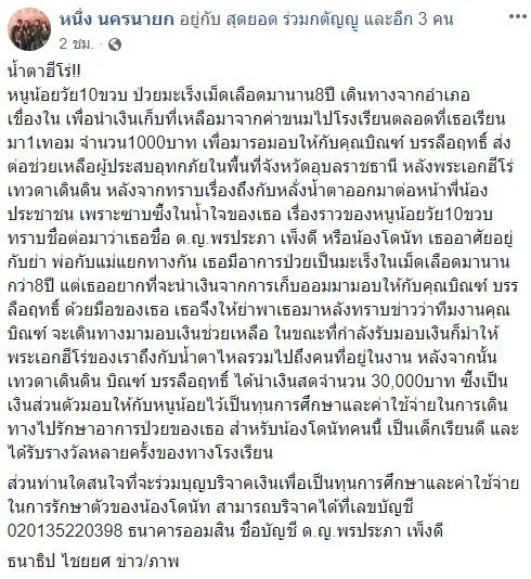 บิณฑ์ กลั้นน้ำตาไม่อยู่ มอบเงิน 1000 ช่วยเหลือหนูน้อย