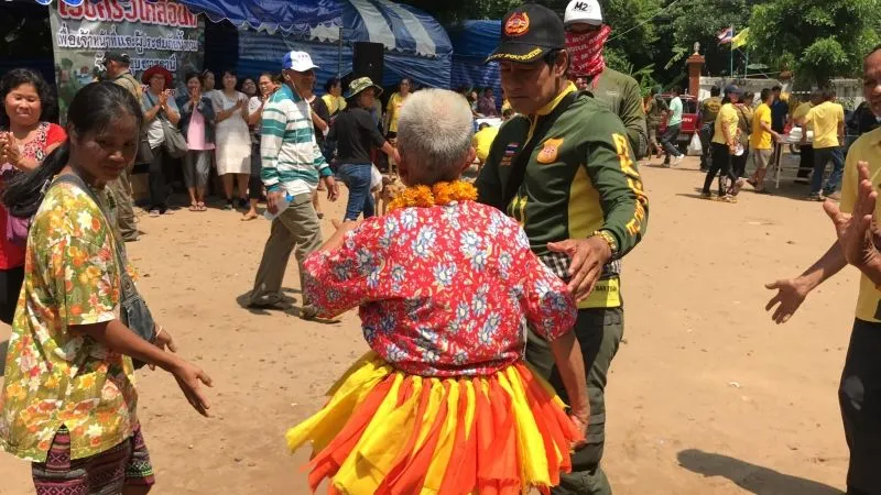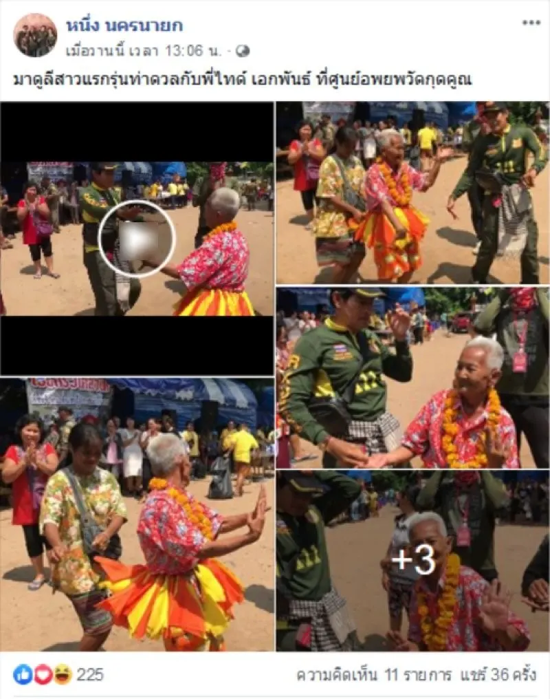 เรียกได้ว่าเป็นอีกหนึ่งคลิปที่เรียกเสียงหัวเราะ และสร้างสีสันให้กับชาวอุบลฯอย่างมากเลยทีเดียว ซึ่งนอกจากประชาชนจะได้รับความเดือนร้อนจากน้ำท่วมที่อุบลฯแล้ว อย่างน้อยในเวลาพักกลางวันยามว่าง ณ ที่เต้นท์ศูนย์พักพิงของชาวบ้านชาวอุบลฯ ก็ได้มีเหล่าชาวบ้านเรียกได้ว่าเป็นวัยแรกแย้มเลยทีเดียว เมื่อมีบรรดาลุง ป้า น้า อา ได้ออกมาเต้นร้องรำทำเพลงกัน เรียกได้ว่าเรียกร้อยยิ้มและเสียงหัวเราะของผู้ที่พบเห็นอย่างมากเลยทีเดียว โดยคลิปและภาพเรียกร้อยยิ้มดังกล่าวได้ถูกเผยแพร่โดย ผู้ใช้เฟซบุ๊คคุณ หนึ่ง นครนายก ได้โพสต์ภาพและข้อความใจความว่า