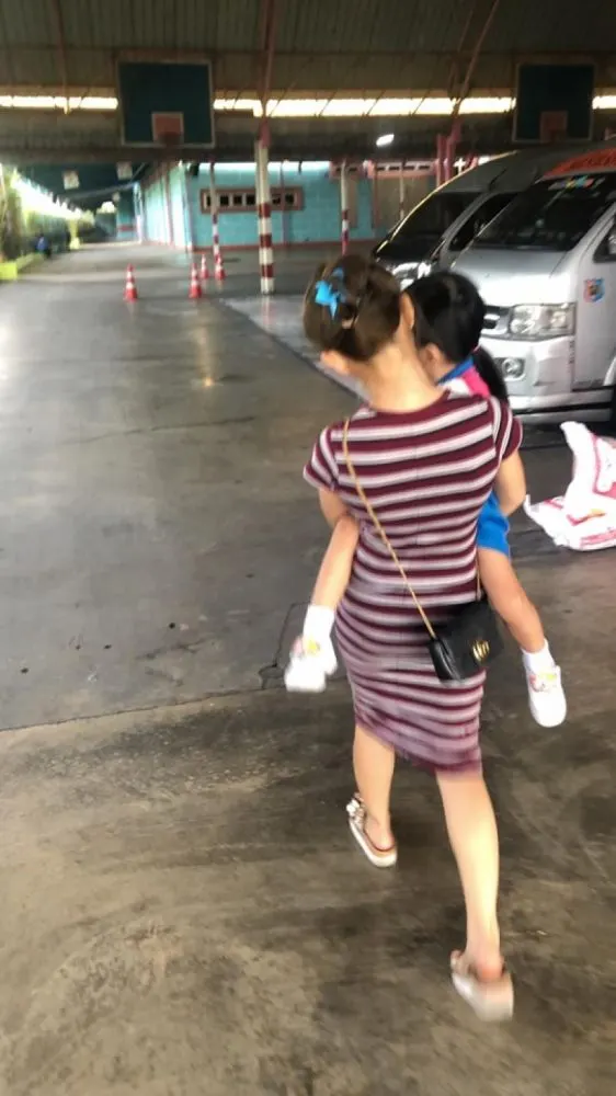 พอถึงโรงเรียน แบมร้องไห้คิดถึงยาย มึ-งก็อุ้มแบม ทั้งปลอบทั้งหอม คุณครูก็งง ๆ นาน ๆ แม่จะมาส่ง 555 ตูก็แอบขำ มึ-งก็หัวเราะตัวเองแห้ง ๆ