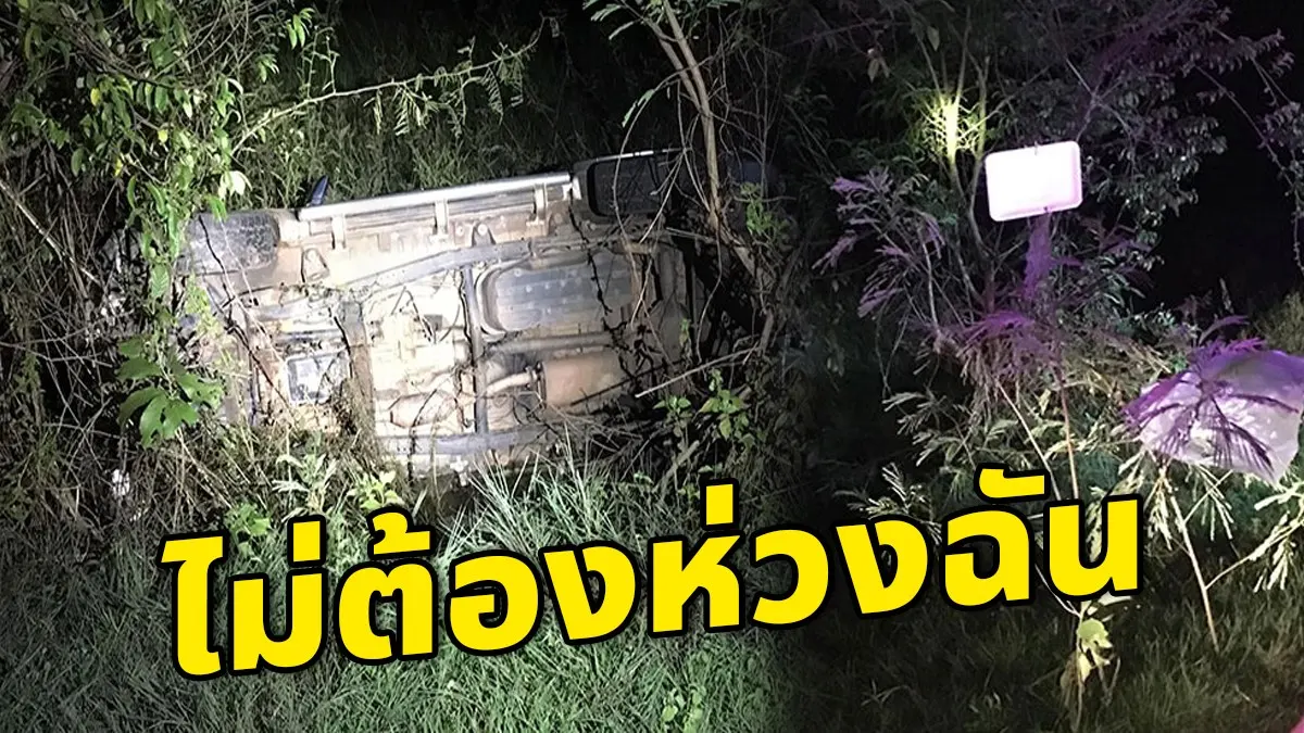 เก๋งตกข้างทาง กู้ภัยรีบไปตรวจสอบ คนขับหาย เจอแค่ป้ายเขียนบอก