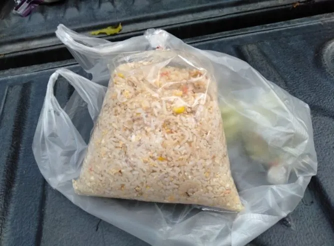 คุณลุงพึ่งเก็บข้าวหมาครั้งแรก เมื่อวานลุงได้เดินกลับจากบ้านของลูกสาวเห็นข้าวเหลือก็เลยเก็บกวาดๆมาให้หมาที่บ้านกิน ลุงไม่ได้มีเจตนาที่จะขโมย วันนี้ไปที่บ้านของลุงมา ลุงไม่มีวัว ไม่มีหมู มีแต่หมา 7-8ตัว