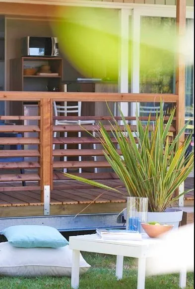 บ้านหลังนี้เป็นบ้านโมบาย หลังเล็ก หากมองภายนอก หน้าบ้านโล่งโปร่งมีระเบียงหน้าบ้านเป็นพื้นที่ใช้สอยทำกิจกรรมภายในครอบครัว หรือจะใช้เป็นที่ พบปะกับแขกผู้มาเยือนก็ได้บรรยากาศอบอุ่น พื้นไม้ นั่งแล้วเย็นสบาย ให้ความรู้สึกเป็นกันเอง เหลือบมองมาหน้าบ้าน มีพืชสีเขียวต้นไม้น้อยใหญ่ เย็นตายิ่งนัก ประกอบกับลานหน้าบ้านอันกว้างขวาง