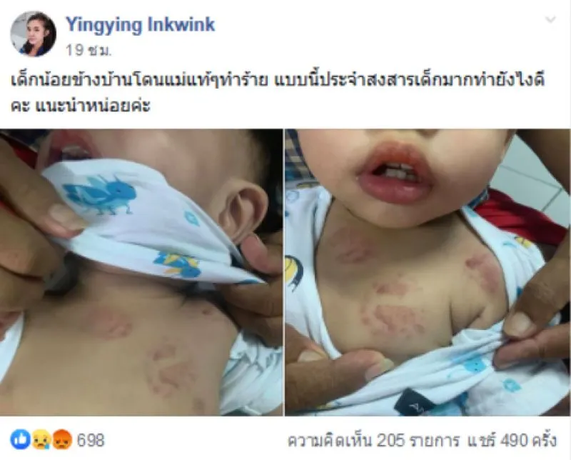 เมื่อวันที่ 26 กันยายน 2562 ที่ผ่านมา ได้มีการแชร์เรื่องราวของหนูน้อยคนหนึ่งที่โดนคุณแม่แท้ๆทำร้ายอยู่เป็นประจำจนข้างบ้านทนไม่ไหว โดยผู้ใช้เฟสบุ๊คที่ใช้ชื่อว่า Yingying Inkwink ได้โพสต์ภาพของหนูน้อยรายหนึ่ง โดยได้ระบุข้อความว่า เด็กน้อยข้างบ้านโดนแม่แท้ๆทำร้าย แบบนี้ประจำสงสารเด็กมากทำยังไงดีคะ แนะนำหน่อยค่ะ