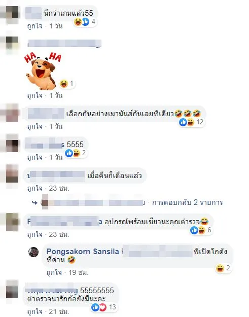 ทั้งนี้หลังจากเรื่องราวของผู้ใช้เฟซบุ๊กรายนี้ถูกเผยแพร่ออกไปได้มีชาวเน็ตจำนวนมากเข้ามาแสดงความคิดเห็นพร้อมแซว เจ้าหน้าที่ตำรวจอย่างขำๆว่าอุปกรณ์พร้อมเลยนะคุณตำรวจ