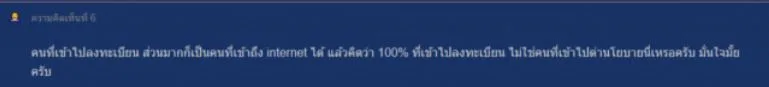 คนที่เข้าไปลงทะเบียน ส่วนมากก็เป็นคนที่เข้าถึง internet ได้ แล้วคิดว่า 100% ที่เข้าไปลงทะเบียน ไม่ใช่คนที่เข้าไปด่านโยบายนี่เหรอครับ มั่นใจไหมครับ