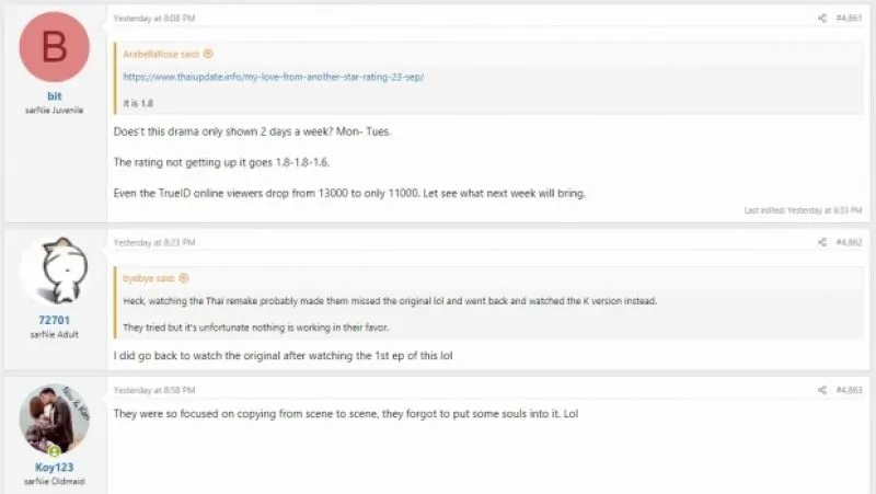 โดยตัวอย่างคอมเมนต์ก็เช่น "ดูเวอร์ชั่นรีเมกภาษาไทยแล้ว ก็ไม่ได้รู้สึกว่าแตกต่างอะไรกับ ต้นฉบับ กลับไปดูเวอร์ชั่นเกาหลีใต้ดีกว่า พวกเขาโฟกัสไปที่การ ก็อปปี้ แบบซีนต่อซีนแต่ดันลืมที่จะใส่จิตวิญญาญของความสนุกเข้าไปในเนื้อเรื่องด้วย