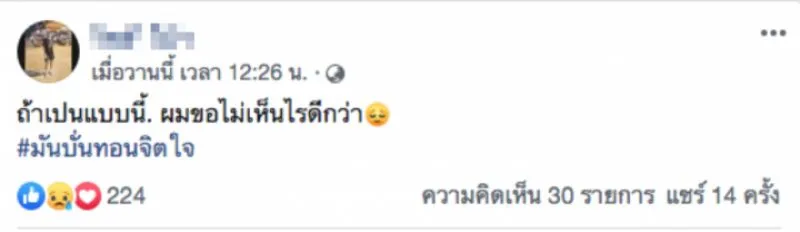 ทั้งนี้ เฟซบุ๊กของ 1 ใน 14 ผู้เสียชีวิตนั้น ได้โพสต์ข้อความสุดท้ายเมื่อเวลา 12.26 น. วันที่ 28 ก.ย.ที่ผ่านมา โดยได้โพสต์ข้อความว่า "ถ้าเป็นแบบนี้ ผมขอไม่เห็นไรดีกว่า มันบั่นทอนจิตใจ" โดยมีเพื่อนผู้เสียชีวิตเข้ามาโพสต์อาลัย และแสดงความเสียใจกันเป็นจำนวนมาก.
