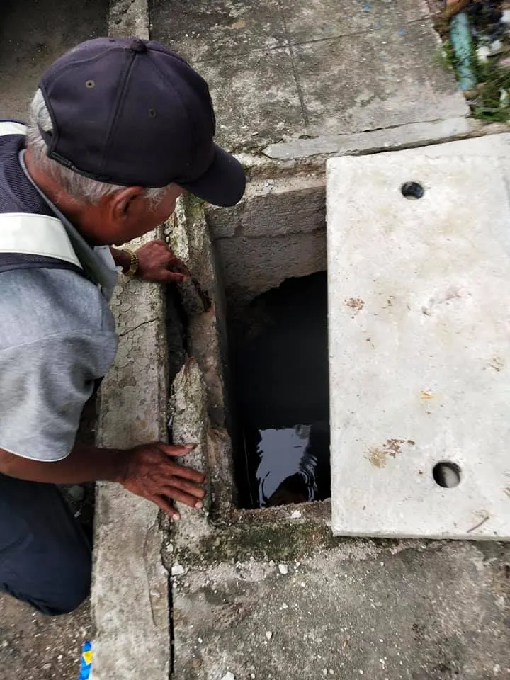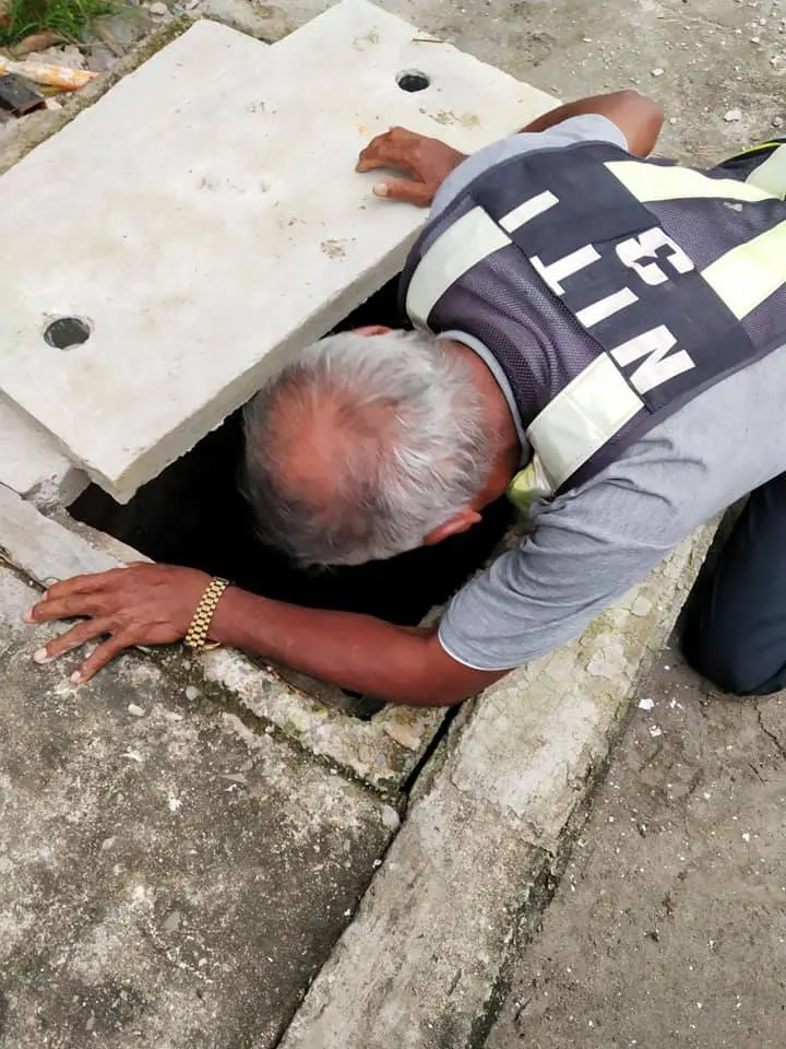 จนได้พบเจอกับคุณลุง รปภ.กำลังเดินอยู่บนอาคารเราจึงเรียกลุงมาช่วย จนเอาลูกหมาออกมาจากท่อน้ำเสียได้