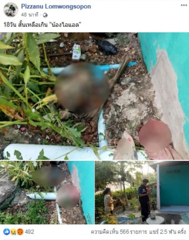 และล่าสุด มีผู้ใช้เฟสบุ๊คชื่อ Pizzanu Lomwongsopon ได้ออกมาโพสต์สภาพร่างไร้วิญญาณของน้อง ไอแอล ต้องบอกเลยว่าสะเทือนใจมาก ญาติๆเห็นแล้วใจสลายทันที คล้ายนำมาถูกวางทิ้งไว้หลายวัน เพราะน้อง เขียวทั้งตัวแล้ว อย่างไรก็ตาม ทสงทีมงานขอแสดงความเสียใจด้วยนะคะ