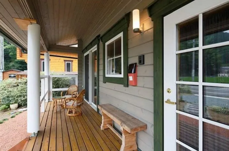 พื้นที่บริเวณหน้าบ้านนั้นกว้างสบาย มีพื้นที่ใช้สอย ไม่ว่าจะทำกิจอันได หรือการทำกิจกรรมร่วมกันหน้าบ้านก็ได้อย่างสบาย หรือท่านที่ชอบอยู่คนเดียว ก็เป็นพื้นที่รับลมได้อย่างดี นั่งตรงนี้รับลม หันไปมองบ้านก็ให้ความรู้สึกผ่อนคลาย เพราะโทนของสีบ้านนั้นช่างนุ่มนวลและสบายตา ชวนน่าพักเป็นอย่างมาก เห็นแล้วก็หลงรักกันเลยทีเดียว