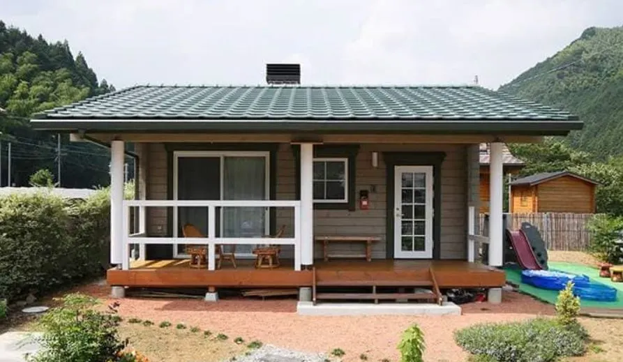 สำหรับบ้านหลังนี้ เป็นบ้านชั้นเดียว ยกพื้นสูง เป็นบ้านที่เลือกใช้วัสดุการก่อสร้างที่ลงตัวมาก ทำให้เข้ากัน ตั้งแต่บนหลังคาที่มีลวดลาย การใช้ไม้ในการก่อสร้างตัวโครงและบ้านบางส่วน ขนาดหลังเล็กๆ ไว้สำหรับ คนที่ชอบอยู่คนเดียว หรืออาจจะมาพักผ่อนกับครอบครัวในวันสบาย
