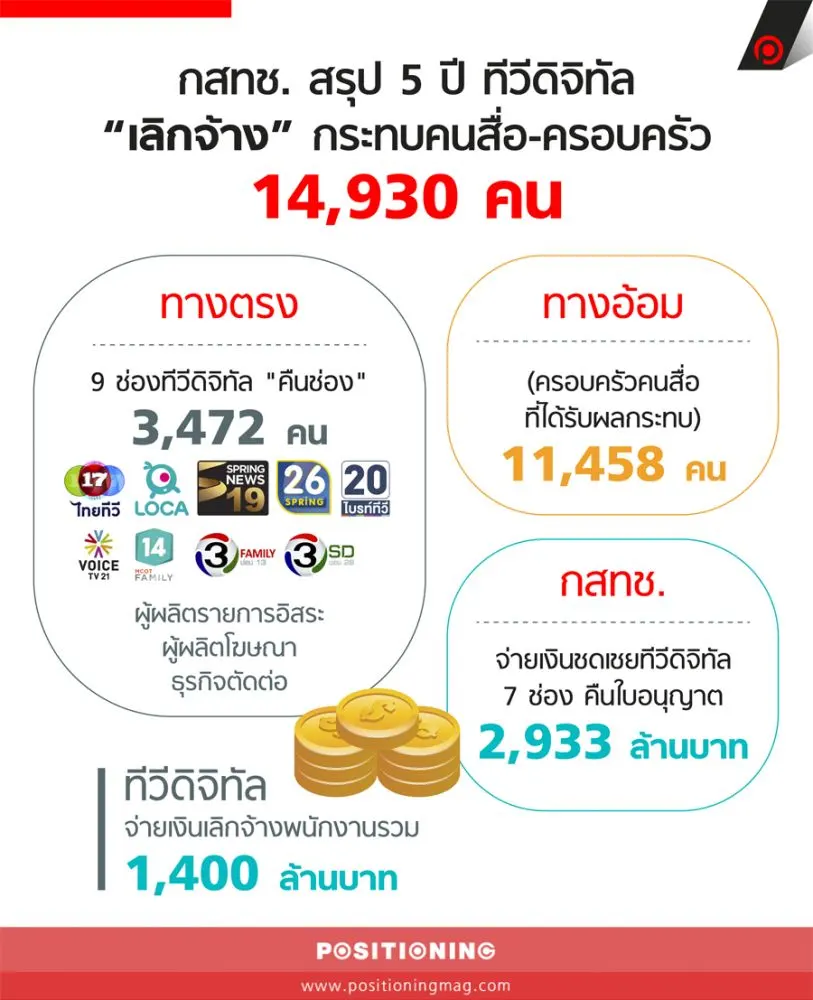 กสทช. สรุป 5 ปี 'ทีวีดิจิทัล' ปิดฉากคืนใบอนุญาต 7ช่อง 'เลิกจ้าง' กระทบคนสื่อ-ครอบครัวเกือบ 15,000 คน