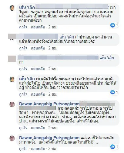 ตามตลอดค่ะ พาไปหาหมอ พาไปรักษา.. ทำทุกอย่างค่ะ.. ไม่เคยปล่อยทิ้ง ไม่เคยทอดทิ้ง.. ควรฟังทางเราบ้างว่าเค้า.. ทำความเดือนร้อนอะไรให้บ้านเราบ้าง.. แต่ทางเราก็ไม่เคยปล่อยทิ้ง. เค้าหนีไปเอง #ครอบครัวเราเสียหาย เพราะคำพูดคนบ้า