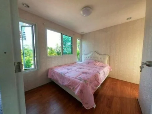 ภายในห้องนอนได้ทำการตกแต่งเตียงนอนดีไซน์สุดคลาสสิคพร้อมด้วยผ้าปูเตียงที่มีโทนสีชมพู