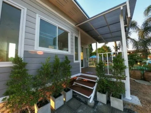 บ้านน็อคดาวน์ปัจจุบันนี้ ถือว่าเป็นอีกทางเลือกที่น่าสนใจสำหรับผู้ที่มีงบในมือไม่มากนัก นอกจากจะราคาไม่สูงมากแล้วยังใช้เวลาก่อสร้างที่ไม่นาน งบประมาณค่อนข้างชัดเจนไม่บานปลาย วันนี้ตะเกียงจะพาท่านไปชมตัวอย่างบ้านน็อคดาวน์ที่มีขนาดกระทัดรัด สวยงาม โดยบ้านที่เราจะพาไปชมนี้เป็นบ้านของคุณแพรว วังน้อย ซึ่งฝีมือในการก่อสร้างเป็นของ Thaihomeindy โดยเป็นบริษัทที่รับสร้างบ้านน็อคดาวน์ โดยบ้านหลังนี้ จุดเด่นอยู่ที่มีการจัดองค์ประกอบ ให้ดูเรียบง่ายและลงตัว
