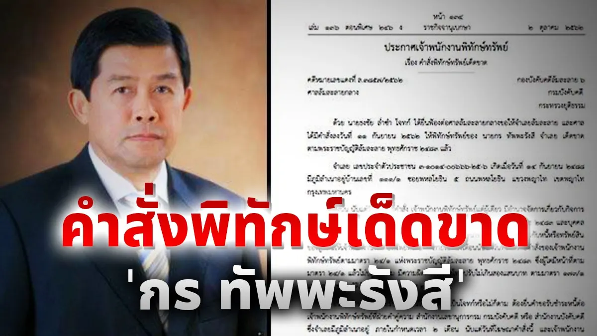 คำสั่งพิทักษ์ทรัพย์เด็ดขาด'กร ทัพพะรังสี'อดีตรองนายกรัฐมนตรี