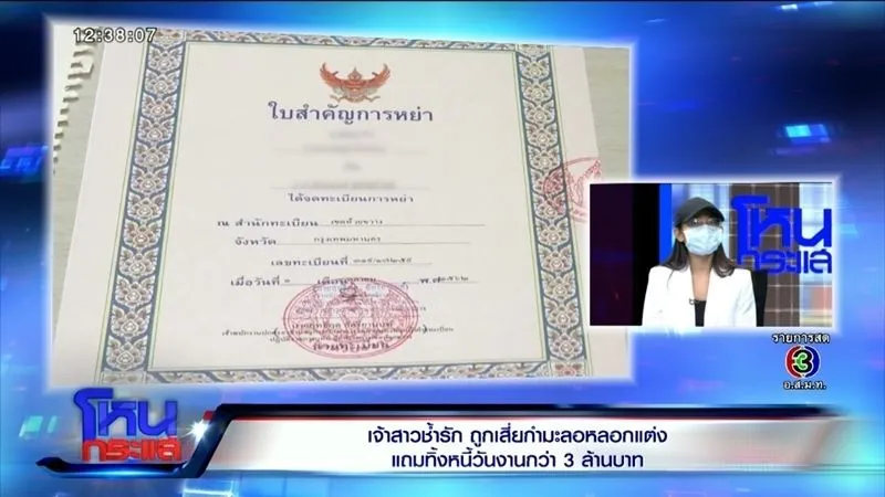 จากกรณีที่ น.ส.ดา (นามสมมติ) ชาว จ.บุรีรัมย์ ระบุว่าถูก นายท็อป (นามสมมติ) อ้างว่าเป็นนักธุรกิจรวยหมื่นล้าน รู้จักแค่เพียง 1 วัน หลอกให้แต่งงาน-จดทะเบียนสมรส จัดงานที่โรงแรมหรู ก่อนที่เจ้าวบ่าวจะเบี้ยวไม่จ่ายเงิน ทำให้ตัวเองต้องตกที่นั่งลำบาก ต้องชดใช้หนี้แต่เพียงผู้เดียว ครอบครัวได้รับความเดือดร้อน