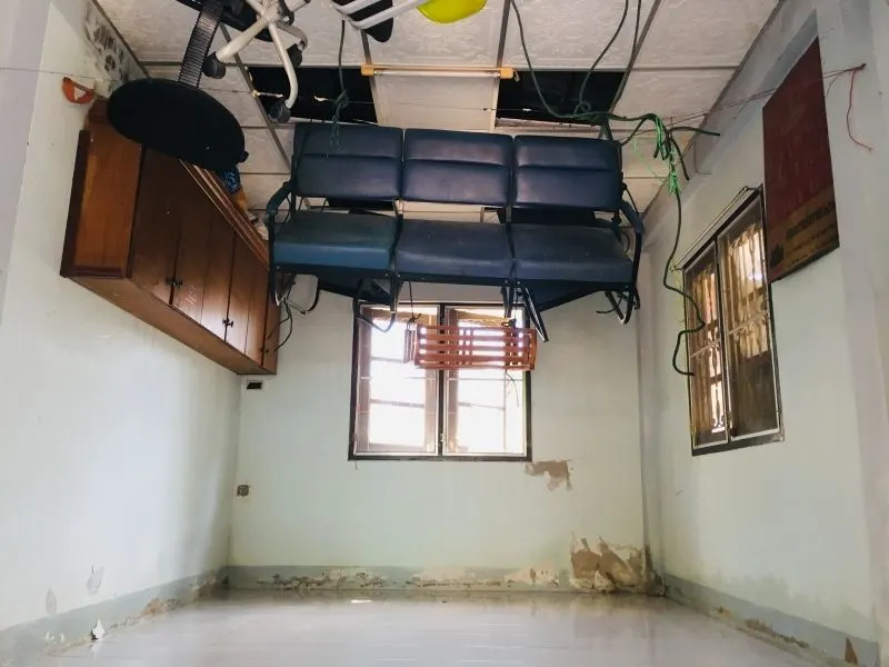 นี่เป็นบ้านที่ผ่านการทำความสะอาดโดยอาสาสมัครแล้ว จากนั้น เจ้าของบ้านก็จะเก็บข้าวของที่มีสภาพใช้งานได้เข้าที่เข้าทาง แน่นอน สูญเสียเกินครึ่ง