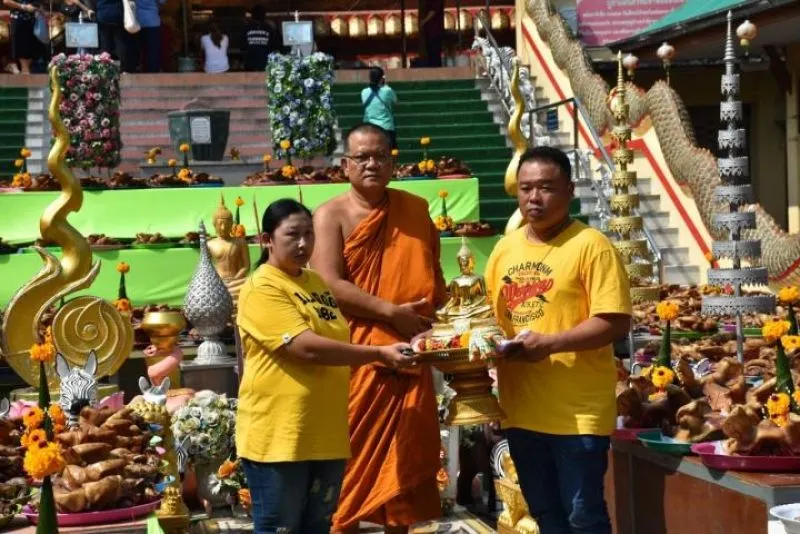 เมื่อวันที่ 3 ต.ค.62 ที่วัดหลวงพ่อสมหวัง มี นายโยธิน คุ้มใหญ่โต ผู้ถูกหวยรางวัลที่ 1 หมายเลข 340388 งวดวันที่ 16 ก.ย. 62 ได้นำหัวหมูต้มสุก จำนวน 1,200 หัว ลำเลียงโดยรถห้องเย็นถึง 2 คัน นำมาที่วัดกลางบางพระ ตั้งแต่ 05.30 น. วางเรียงรายตั้งแต่บันไดทางขึ้นลงมาถึงลาน และยังต้องปิดถนนด้านหน้าที่รถวิ่งผ่านหลวงพ่อสมหวัง เพื่อใช้วางหัวหมูแก้บนหลวงพ่อสมหวัง
