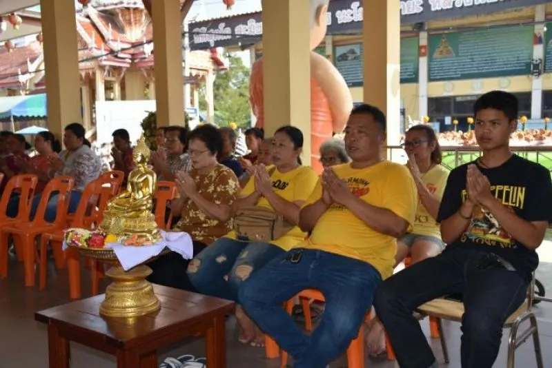 ทั้งนี้ นายโยธิน ได้พาครอบครัวมาร่วมพิธี โดยมีพระครูศรีสุตากร เจ้าอาวาส มาทำพิธีบวงสรวง ท่ามกลางชาวบ้านที่จะมารอรับแจกหัวหมู และตัวแทนจาก 7 อำเภอ ในจังหวัดนครปฐม ที่ทางวัดได้แจกหัวหมูให้กับทางราชการเพื่อนำไปแจกจ่ายให้กับผู้ยากไร้