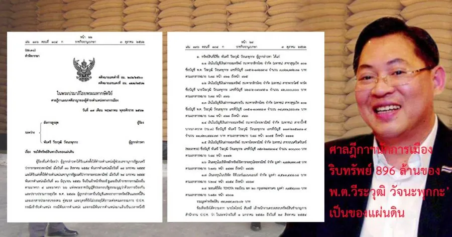 ศาลฎีกาฯนักการเมืองสั่งริบทรัพย์ 896 ล้านบาทของพ.ต.วีระวุฒิ วัจนะพุกกะ อดีตเลขาฯบุญทรง ตกเป็นของแผ่นดิน
